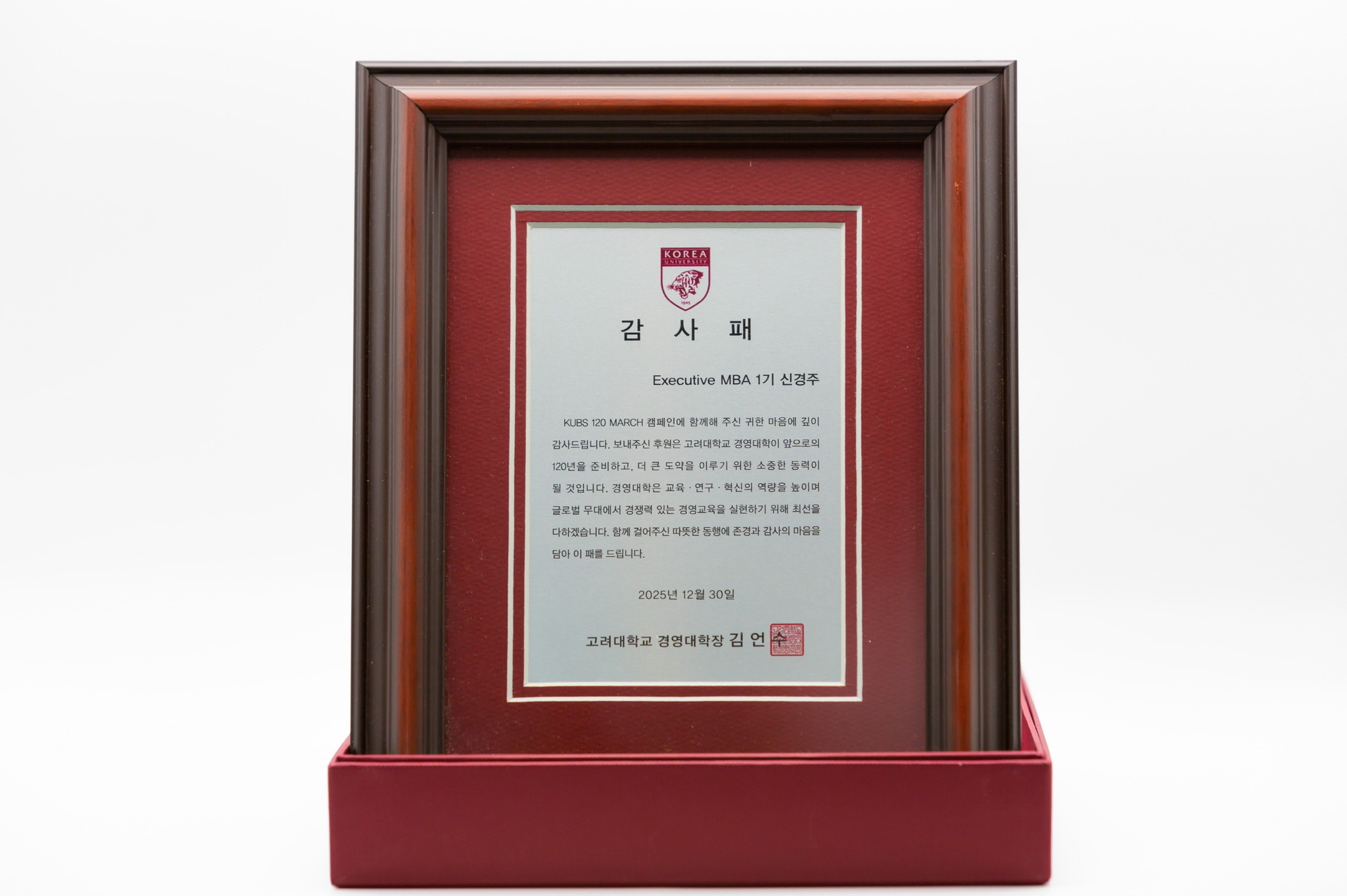 저희는 모교인 고려대학교에 장학금을 기부하고 작은 기부식을 가졌습니다. 이 글을 쓰는 지금도 이 이야기를 기록으로 남기는 것이 맞는지 잠시 고민했습니다. 하지만 자랑이 아니라 감사의 마음을 남기기 위한 기록이라면 조심스럽게 적어도 되겠다는 생각이 들었습니다.